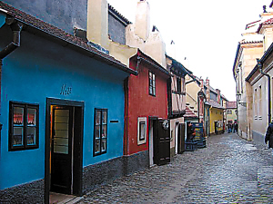 雖然卡夫卡在黃金巷22號(hào)(見(jiàn)圖)僅居住了一年,但這里卻成了游客紀(jì)念卡夫卡最著名的地標(biāo)。19世紀(jì)后,黃金巷一度成為貧民窟,20世紀(jì)中期重新規(guī)劃,原本的房舍被改為小店家,成了著名的手工藝商品一條街。