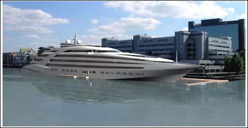 巨型游艇?刻┪钍亢优系南胂髨D。
