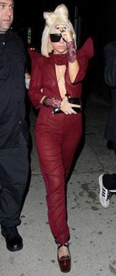 Lady Gaga品位獨特,著裝常成為議論焦點。近日上街時,她穿著了一件暗紅色半透明的連體衣,復古墊肩設計是潮流指標,性感的深V領則為Gaga的一貫作風。她能將一本正經(jīng)的連體衣穿出自己的風格,想突出風格就得敢穿敢為。