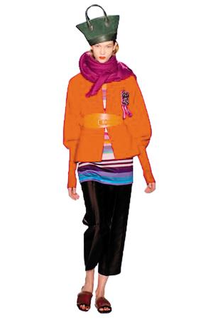 下一季風行的包包既不是雙手緊握的傳統(tǒng)式手提包,也不是流浪漢行囊包,更不是風行一時的超大尺寸手提包,而是一頂引人注目的帽子。這頂出自艾薩克·麥茲拉西(Isaac Mizrahi)的有趣帽子,讓觀眾眼前一亮。