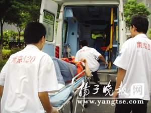 傷者被抬上救護(hù)車。曹盧杰 攝