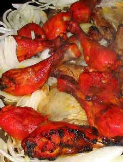抵達(dá)加德滿都的第一晚我們四個(gè)人傻傻的不知道要吃什么,在路上晃來(lái)晃去,后來(lái)不知怎么的就去了Third Eye Restaurant吃印度菜,侍者建議我們點(diǎn)印度哈辣雞(Tandoorie Chicken),另外又點(diǎn)了印度烤餅(Naan)及一種紅咖哩(curry)叫做Chicken Tikka Masala,這一吃之下驚為天人,印度菜真不愧是世界美食。‰y以忘情的我們?cè)跉w國(guó)前一晚又再度光臨,因?yàn)檠吹慕Y(jié)果大家所剩無(wú)幾,于是帶著計(jì)算器,硬是擠出身上的最后一分錢,一定要再吃一只哈辣雞全雞(375 Rs),才甘心回家。