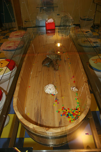 便便滿屋飯?zhí)糜幸晃幻琅习迥,每天都很開心的樣子。在談到為什么會(huì)開這么一家衛(wèi)浴主題的餐館時(shí),店主李女士說:“原來看到國外有人做過類似的主題餐廳,我很喜歡,就開了一家。我們的餐具都是專門定制的,非常特殊,充滿童趣,F(xiàn)在我們的顧客大部分是10到35歲的年輕人,目的是讓他們能在這里解壓、釋放!