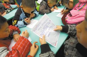昨日,南岸十公里,孩子們在老師指導下,寫信給父母表示感恩。本報記者 陳浮 攝