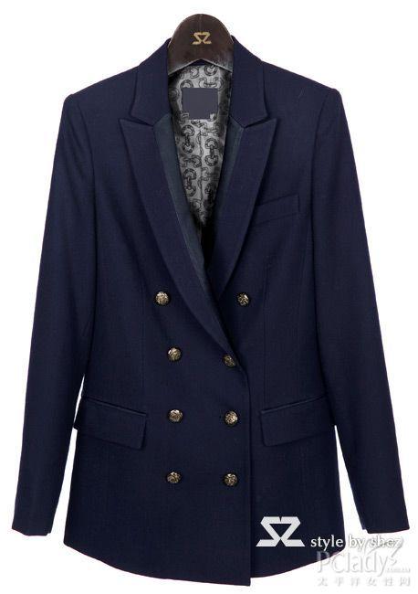 我們經(jīng)常可以從正統(tǒng)的制服中窺見雙排扣的影蹤,如軍裝、校服等。拋棄了黑色西裝的呆板沉悶,深藍(lán)色調(diào)卻為你帶來一種冷靜沉著的情緒,也在視覺上有收縮的的效果,讓你身材更顯瘦。金色的雙排紐扣就如點(diǎn)睛一般地與深藍(lán)色面料對比得十分好看,這款充滿制服正式感的西裝絕對是為知性O(shè)L而存在的,硬挺的面料和剪裁別致的領(lǐng)型,為你帶來十足的干練感!