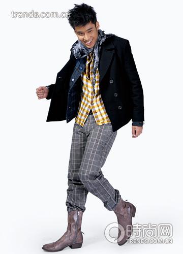 青果領(lǐng)粗線毛衣系上腰帶比普通開衫套在大衣里更能搭出俊朗的效果。
