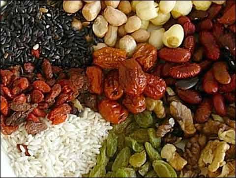 陜南人臘八要吃雜合粥,分“五味”和“八味”兩種。前者用大米、糯米、花生、白果、豆子煮成。后者用上述五種原料外加大肉丁、豆腐、蘿卜,另外還要加調(diào)味品。