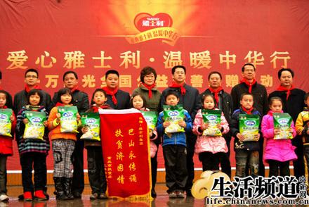 “愛(ài)心雅士利 溫暖中華行”千萬(wàn)陽(yáng)光工程全國(guó)公益捐贈(zèng)活動(dòng),由國(guó)務(wù)院扶貧辦、中國(guó)扶貧開(kāi)發(fā)協(xié)會(huì)、《中國(guó)扶貧》雜志社及中華慈善國(guó)際互聯(lián)網(wǎng)救助中心主辦,廣東雅士利集團(tuán)股份有限公司承辦,全國(guó)各省、市、自治區(qū)、直轄市公益慈善機(jī)構(gòu)共同參與。遠(yuǎn)赴重慶潼南縣的他們,為這里的孩子帶來(lái)他們需要的奶粉、學(xué)習(xí)用品等,用這些點(diǎn)滴愛(ài)心,伴隨他們健康成長(zhǎng)。重慶電視臺(tái)、《重慶日?qǐng)?bào)》、《重慶晨報(bào)》、《重慶商報(bào)》、《重慶時(shí)報(bào)》、潼南電視臺(tái)、《潼南報(bào)》等媒體記者也到場(chǎng)進(jìn)行采訪報(bào)道。