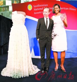在捐贈儀式上,站在米歇爾身旁的吳季剛略顯靦腆。他說,和所有人一樣,直到米歇爾穿著他設(shè)計的禮服出現(xiàn)在總統(tǒng)就職典禮舞會上的一剎那,他才知道自己的作品被選中了。而此次的捐贈儀式是他與米歇爾的第一次見面。