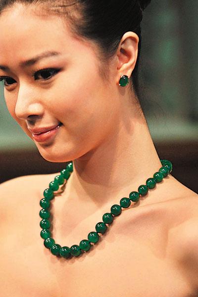 據(jù)香港文匯報報道,香港蘇富比下月7日舉行“瑰麗珠寶及翡翠首飾2010年春季拍賣會”,將呈獻320件閃爍絢麗的珠寶首飾,拍賣總估值逾3.69億港元。在蕓蕓珠寶中,最受注目非全長約530毫米、鑲嵌卡地亞鉑金鉆石扣飾的翡翠玉珠頸鏈莫屬。它由35顆直徑介乎12.55至15.04毫米的翡翠玉珠串連而成,顆顆頂級翡翠水份豐盈,溫潤亮澤,估價高達3,800萬至5,000萬港元,是全場估價最高的珍品。