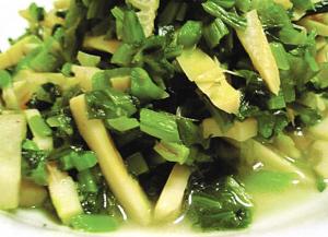 1. 將春筍放入冷水鍋燒至熟,取出切成細(xì)絲;