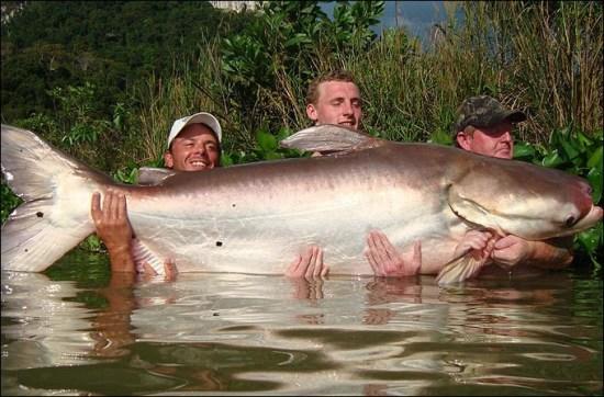 英國(guó)男子在泰國(guó)度假時(shí)捕獲一條約重90公斤的巨型鯰魚。