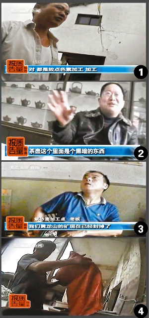 據(jù)央視每周質量報告報道,由于政府實施了“禁礦令”,宜興原礦紫砂越來越少,于是一些煉泥廠開始摻雜使假,大量使用浙江、安徽等外地礦料或者普通陶土,通過添加化工原料或陶瓷色料進行調色,加工生產(chǎn)所謂的原礦紫砂泥。宜興一家紫砂壺加工點的老板承認,黃龍山的礦早已封掉,他們用的泥巴有的來自浙江有的是來自安徽。