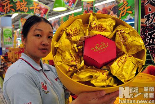 6月9日,海南海口某超市銷售人員正在擺放粽子禮盒。