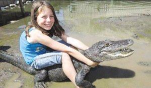 薩曼莎從小就在鱷魚群中長大,從6歲起,她就從自己的父親杰爾、母親艾琳那兒學(xué)會了如何和鱷魚摔跤、并將它們乖乖制服的藝術(shù)!薩曼莎接受記者采訪時說:“我從6歲開始就和鱷魚們摔跤了,我的父母教會了我如何將鱷魚制服的本領(lǐng)。我的父親在5歲時曾經(jīng)被鱷魚咬過一次,從那以后,他就學(xué)會了如何搏斗并制服兇猛的鱷魚。當(dāng)我一開始和鱷魚摔跤時,我真有點兒害怕,不過我的父親一直在我身邊,他總是知道該如何對付它們。如果我面臨危險,他就會過來幫助我!