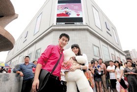 幸福的一對(duì)(后面大屏幕是張歌特意定做的畫面) 本組圖片 本報(bào)記者 車英 攝