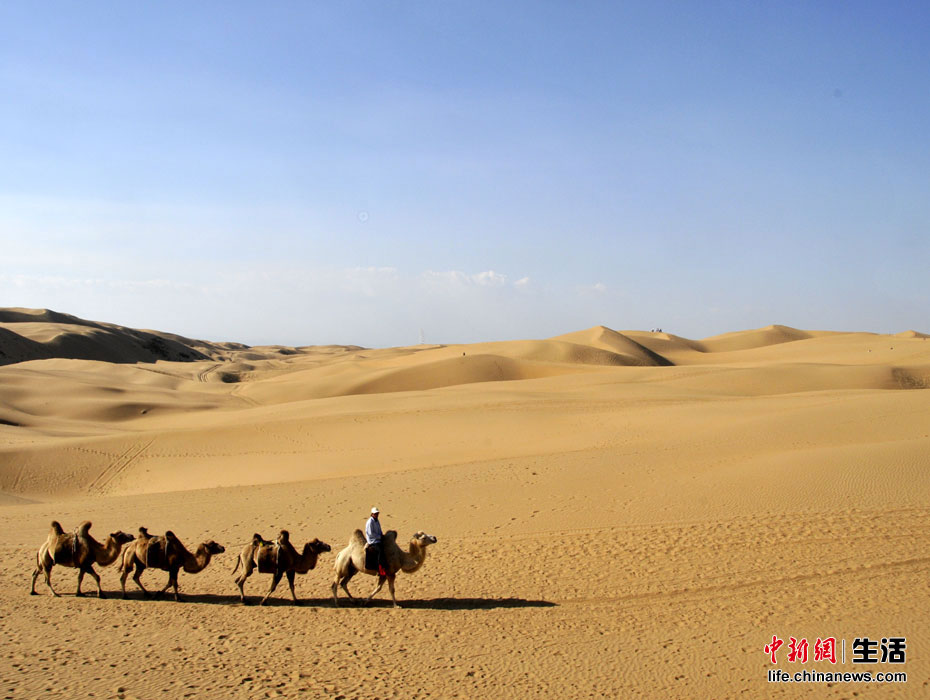 駝隊(duì)走在庫布其沙漠中