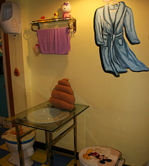 小小的門面,狹窄的樓梯。走上二樓后,這個布置得充滿了童趣的餐廳才展現(xiàn)在食客面前。這里的每把座椅都是一座標準的沖水馬桶。盛放主餐的不是盤子,而是微型馬桶,冷飲則大都放在“蹲坑”形狀的便器里……【詳細】