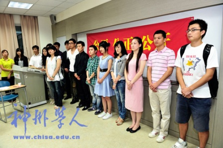 2010年9月19日,在韓中國學(xué)聯(lián)舉辦首屆以“海納百川,有容乃大”為主題的公開納新活動,李忠輝會長及學(xué)聯(lián)各部門的負責(zé)人擔(dān)任了本次公開納新活動的評審委員。招新工作進行得井然有序,同學(xué)們普遍反映效果良好,呈現(xiàn)出一派生氣勃勃的新氣象。