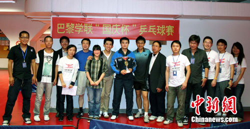 中新網(wǎng)巴黎10月3日電(尹娜)為慶祝中華人民共和國成立61周年,法國巴黎學(xué)聯(lián)于3日在當(dāng)?shù)谹SPN乒乓球俱樂部舉行了“國慶杯”乒乓球邀請賽。