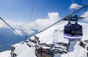 我總有點(diǎn)狹隘地認(rèn)為外國(guó)人都有點(diǎn)“似乎瘋狂”,一逮著點(diǎn)時(shí)間就去登山、滑雪。從山下徒步登上山頂?shù)倪@股累暫且不提,爬上山后再?gòu)母吒叩膽已绿氯,炫自己的滑雪技術(shù)的這股勇氣真是可歌可泣,像我這樣缺少膽量的人自然是不能做此類瘋狂之事,可是面對(duì)皚皚白雪和巍巍高山總是心有不甘,而連接雪山的纜車則正好可以滿足我不費(fèi)吹灰之力也可飽覽群山的愿望。