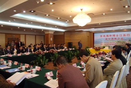 2009“百名海外博士江蘇行”第三站走進了新亞歐大陸橋東橋頭堡——連云港市。連云港市委、市政府舉行了隆重的推介會,誠邀海外博士來港創(chuàng)新創(chuàng)業(yè)。百名海外博士與連云港市各政府部門、企事業(yè)單位代表進行了近距離地對接洽談。市委常委、常務副市長張同生、市委組織部副部長、人事局局長馬炳軍等領導出席了此次會議。