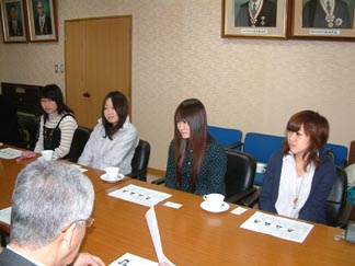 中新網(wǎng)12月29日電 據(jù)《日本新華僑報》報道,12月28日,正在日本北海道紋別市參加“與留學(xué)生對話”活動的四名女留學(xué)生,前往紋別市政府,對市長宮川良一進行了禮節(jié)性拜訪。該對話活動是由紋別市國際友誼會主辦的外國留學(xué)生系列交流活動之一。