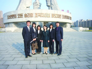 田明房間的朝鮮大學(xué)生是金亨稷師范大學(xué)大四學(xué)生。由于朝鮮的男子都要服10年兵役,所以他們上大學(xué)一般都30歲左右了。這位朝鮮大學(xué)生會(huì)大致留意一下留學(xué)生們的日常生活,但絕對(duì)不像某些傳言那樣監(jiān)視留學(xué)生的日常行動(dòng)。他十分熱情地幫助留學(xué)生學(xué)習(xí)朝鮮語(yǔ),跟所有留學(xué)生都是朋友。