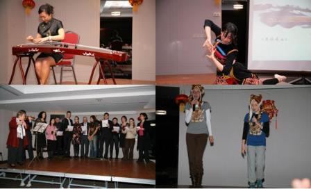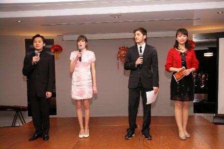 使館教育處王魯新參贊首先給到場的各位嘉賓和所有觀眾拜年并送出虎年的美好祝愿,并回顧了中國在過去一年金融危機時期經濟持續(xù)發(fā)展的良好勢頭和在國際舞臺上的重要地位,同時展望了祖國更美好的2010年,即興用英語做了發(fā)言,在熱烈掌聲后開始了文藝演出。