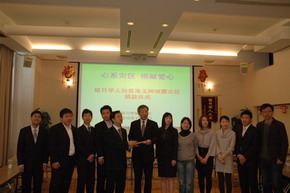 中新網(wǎng)4月21日電 據(jù)《日本新華僑報》報道,青海玉樹地區(qū)發(fā)生7.1級強烈地震后,廣大留日學人通過各種媒體密切關注抗震救災情況、關注災區(qū)的同胞命運。4月18日上午,全日本中國留學生學友會會長胡昂以及東京大學、東京工業(yè)大學、筑波大學、早稻田大學、慶應大學、東京海洋大學、千葉大學、日本大學等8所大學的中國留學生學友會會長來到教育處,將留日學子為青海省玉樹地震災區(qū)募集的第一批賑災款60萬日元送到了教育處。中國駐日本大使館公使銜參贊孫建明代表教育處接受了來自留日學子的第一筆愛心捐款。