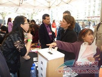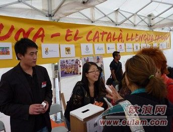 加泰羅尼亞語保護(hù)協(xié)會在SANT JORDI當(dāng)天也組織了一系列的活動,這些活動也得到巴塞羅那中國學(xué)生學(xué)者聯(lián)誼會的積極參與。23日早上在VILATOMAT 2號的某個公立小學(xué)里,巴塞羅那中國留學(xué)生黃星星、張志軍、周子恒、項天宇、徐忱同學(xué)等人就積極參加他們的一系列活動。當(dāng)天下午加泰羅尼亞語協(xié)會在市中心的大學(xué)廣場搭建了臨時活動地點(diǎn),同時也給巴塞羅那中國學(xué)生學(xué)者聯(lián)誼會一個宣傳自己的“攤位”。熱情的中國留學(xué)生們除了教過往的當(dāng)?shù)厝思靶∨笥褜懼形拿忠酝,小書法家張志俊同學(xué)用中文寫了一些字畫,并剪裁成漢字“拼圖”,讓當(dāng)?shù)氐男『⒆觽兤粗形淖,這些小孩子在玩樂之余,對中文產(chǎn)生了更加濃厚的興趣,留學(xué)生們借著這個活動,在推加泰蘭語影響力的同時也提高了中文的知名度。除此之外,中國留學(xué)生們不忘青海地震,還設(shè)立了專門的籌款箱,為青海地震籌款,在同學(xué)們的積極介紹下,路過的民眾都投下或多或少的零錢或紙幣,晚上活動結(jié)束的時候中國留學(xué)生為青海地震籌得捐款103歐元。