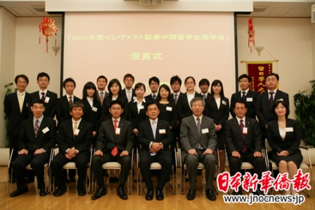 隨后,川路猛社長和孫建明公使分別為十名獲獎(jiǎng)?wù)哳C發(fā)了獎(jiǎng)狀和獎(jiǎng)金,并與獲獎(jiǎng)中國學(xué)生就在日本的學(xué)習(xí)生活、對留學(xué)生活的感受等話題,展開了親切的交流。川路猛社長還表示,英巴斯特證券的公司職員里面有很多年輕人,因此歡迎獲獎(jiǎng)中國留學(xué)生多來和公司的年輕人一起交流。東京大學(xué)博士生葛星同學(xué)代表本次獎(jiǎng)學(xué)金獲獎(jiǎng)?wù)弑硎,“飲水不忘掘井人”,獲獎(jiǎng)同學(xué)們一定會(huì)好好利用這筆獎(jiǎng)學(xué)金,在做好研究的同時(shí),也要對中日青年友好交流做出自己的貢獻(xiàn)。