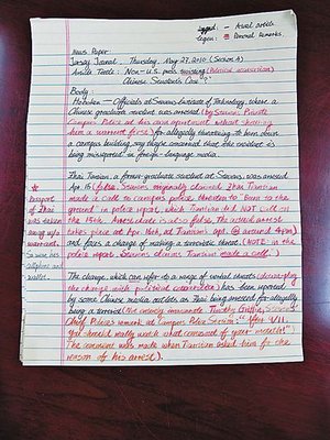 中新網(wǎng)5月31日電 據(jù)美國(guó)《世界日?qǐng)?bào)》報(bào)道,被以恐怖威脅(Terroristic Threats)罪名逮捕的中國(guó)留學(xué)生翟田田的移民代表律師海明28日呼吁華裔社區(qū)為其捐款,一則幫助改善翟田田在監(jiān)獄內(nèi)的生活,二來(lái)聘請(qǐng)刑事律師幫他洗脫罪名。