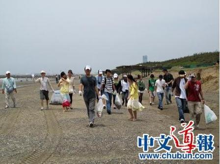 中新網(wǎng)6月17日電 據(jù)日本《中文導(dǎo)報》報道,2010年6月13日,按照預(yù)先計劃,日本千葉大學(xué)中國留學(xué)生學(xué)友會舉行了一次特殊的志愿活動—— “千葉海港綠色環(huán);顒印保瑸榈久I公園的旅游區(qū)拾掇垃圾,清理環(huán)境衛(wèi)生。