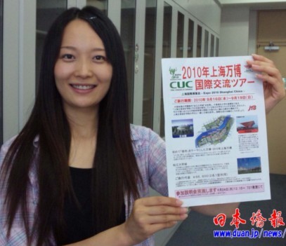 在千葉商科大學(xué)研究生院攻讀碩士學(xué)位的中國留學(xué)生于瑤對(duì)《日本僑報(bào)》記者說,這次世博交流之旅價(jià)錢不貴,很適合大學(xué)生參加,我們留學(xué)生也可以利用假期回國。