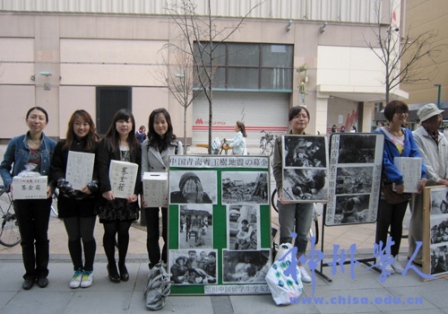 在札幌圈內(nèi),以北海道大學為中心的各個大學分別從4月22日開始在學校的公共場所進行了募捐活動。北海道地區(qū)中國學友會在北海道大學組織了近30多人的宣傳和募捐隊伍,先后進行了4天的募捐。隨后,北海道情報大學也組織了為期三天的全校募捐活動。6個地區(qū)的分會也根據(jù)具體情況分別在不同的時間里在各自的大學校園里進行了頗有影響的宣傳和募捐活動。