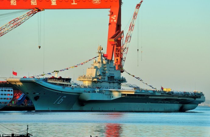 “遼寧艦”節(jié)日期間霓虹燈閃亮裝點海灣
