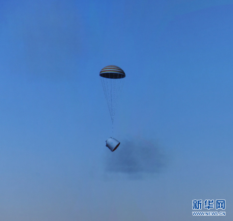 神舟十號打開降落傘降落 李非攝