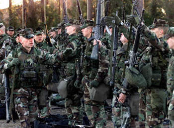 據(jù)英國(guó)廣播公司消息,五角大樓本周末在海灣的增兵是一個(gè)多月來(lái)規(guī)模最大的。美國(guó)國(guó)防部長(zhǎng)拉姆斯菲爾德首先下令派兵35000名,其中以海軍陸戰(zhàn)隊(duì)為主。