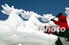 哈爾濱雪雕博覽會(huì)一月正在松花江畔舉行,園藝師制作長達(dá)數(shù)十米的大型雪雕森林之歌,好似藍(lán)天下的神曲。作者:毛建軍