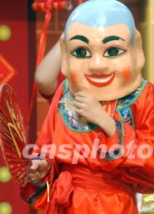 香港麥當勞一月二十日在銅鑼灣時代廣場舉行“麥當勞TM新年開心成雙”活動。圖為“大頭娃娃”賀新春。錢興強 攝