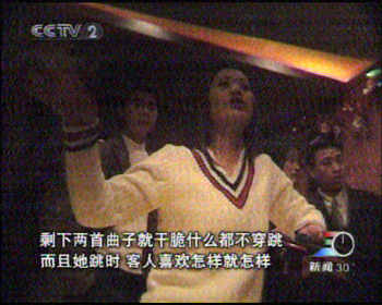 暗訪的央視記者問一位在門口攬客的小姐:夜總會有什么節(jié)目表演?這位小姐笑了笑說,你進去看看,包你滿意,并告訴記者,今天是星期六客人多,要抓緊時間訂座,不然找不到座位。