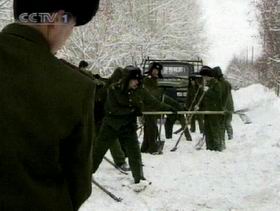 據(jù)參與營救工作的阿勒泰公路總段人士說,嚴重受阻的六條國省道路有二百多公里,包括國道二一六線、二一七線。該段共組成六支搶險隊奔赴雪阻現(xiàn)場,投入搶險機械二百多臺,清理積雪八十五萬立方米,僅堆在路基旁的積雪就達兩米高。目前仍有部分路段需要不斷清除雪阻以保證路面正常通行。