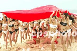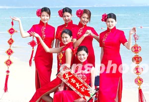 圖:二百多名模特到海南三亞向全國(guó)人民拜年