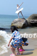 中國模特杜鵑,二十三日做秀海南三亞天涯海角,演繹海上芭蕾。作者:毛建軍
