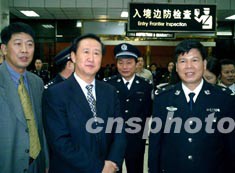 自元月二十七日零時起,深圳皇崗與香港落馬洲口岸二十四小時旅客通關(guān)正式運作,深圳市常務(wù)副市長李德成(左二)午夜零時親臨皇崗口岸查看通關(guān)情況。作者:陳文