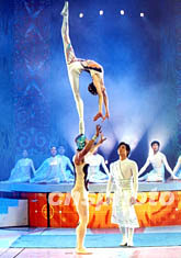 廣州軍區(qū)的掌上芭蕾《化蝶》也是晚會(huì)歌舞類節(jié)目的亮點(diǎn),這個(gè)節(jié)目早在湖南金鷹節(jié)就曾亮相過(guò),曾經(jīng)獲得第二十六屆蒙特卡羅金小丑芭蕾舞金獎(jiǎng),不過(guò)此番被央視用《梁!纷霭b,還是讓現(xiàn)場(chǎng)觀眾嘆為觀止。兩個(gè)舞蹈演員在觀眾面前表演了芭蕾絕技,最讓人不可思議的是女演員居然把身體的平衡點(diǎn)放在男演員的肩膀甚至頭頂上。今年歌舞演員新面孔多于往年,特別是中央電視臺(tái)大獎(jiǎng)賽上,獲得優(yōu)異成績(jī)的這些演員,將出現(xiàn)在今年春節(jié)晚會(huì)當(dāng)中。