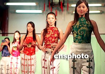 圖:模特在北京春節(jié)廟會上展示"中國結(jié)"時裝