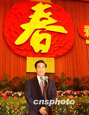 中共中央總書記胡錦濤主持團(tuán)拜會(huì)。他代表中共中央、國(guó)務(wù)院,向全國(guó)各族人民,向廣大工人、農(nóng)民、知識(shí)分子和干部,向人民解放軍指戰(zhàn)員、武警官兵和公安干警,向各民主黨派和全國(guó)工商聯(lián)、各人民團(tuán)體和各界人士,表示節(jié)日的問候。他向香港特別行政區(qū)同胞、澳門特別行政區(qū)同胞、臺(tái)灣同胞、海外僑胞,致以良好的祝愿,并向關(guān)心和支持中國(guó)現(xiàn)代化建設(shè)的國(guó)際友人,表示衷心的感謝。他祝大家新春愉快,身體健康,闔家幸福!