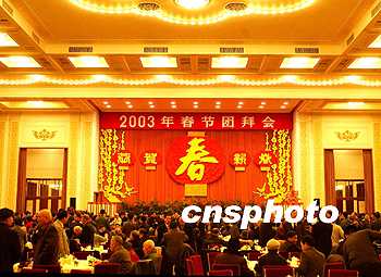 中新網(wǎng)北京1月31日電(記者 齊彬)中共中央、國(guó)務(wù)院今天上午在人民大會(huì)堂舉行二00三年春節(jié)團(tuán)拜會(huì),江澤民、胡錦濤、李鵬、朱镕基、李瑞環(huán)、李嵐清、吳邦國(guó)、溫家寶、賈慶林、曾慶紅、黃菊、吳官正、李長(zhǎng)春、羅干等領(lǐng)導(dǎo)人同首都各界人士四千五百多人歡聚一堂,辭舊迎新,共慶中國(guó)人民的傳統(tǒng)節(jié)日。